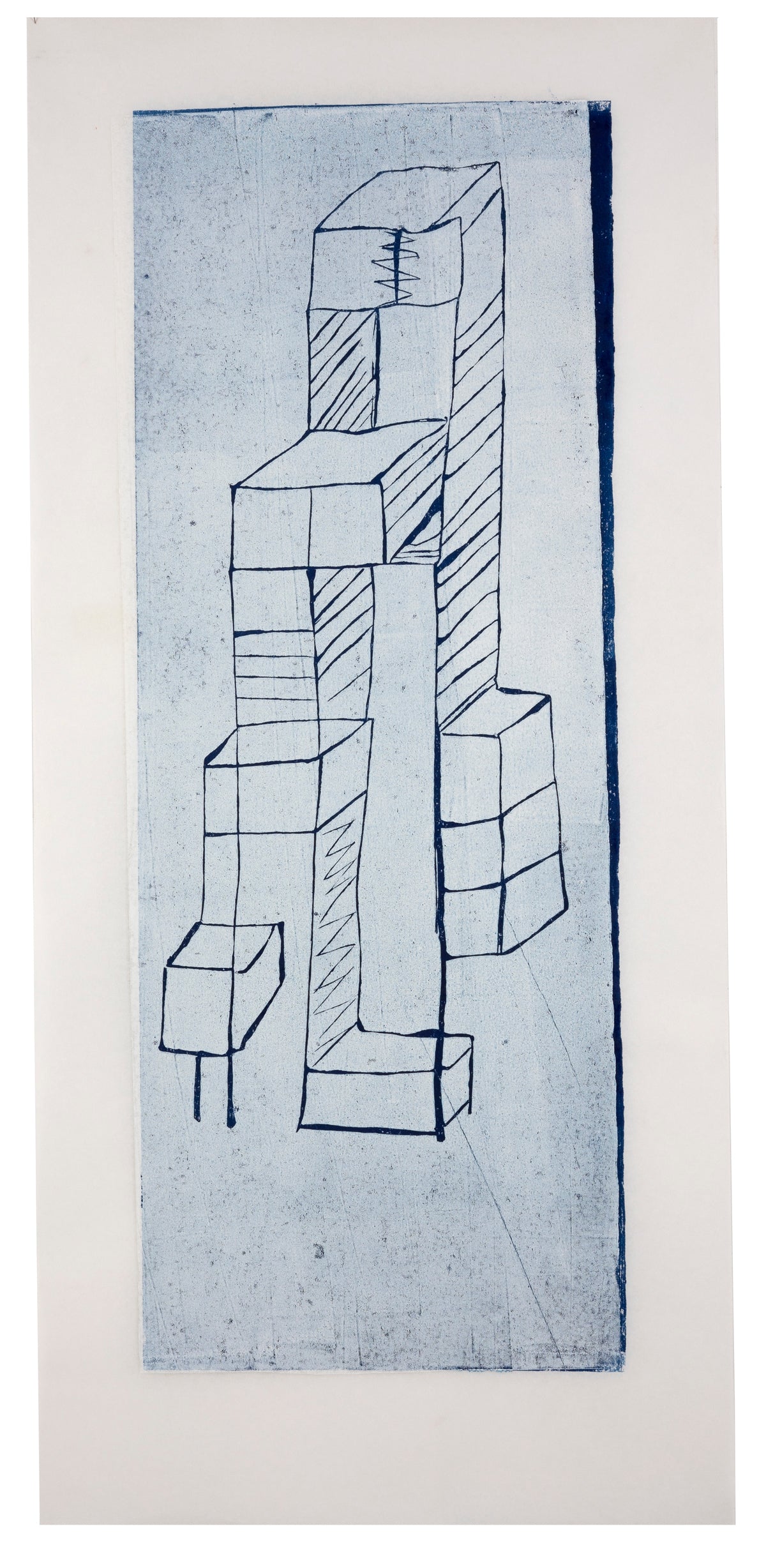 Linoleumssnit. Olie på japanpapir, unika (i hvid ramme med luft))